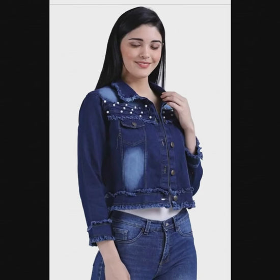 This jacket brings together denim strength with pearl elegance, making it the ideal pick for women who want to stand out.